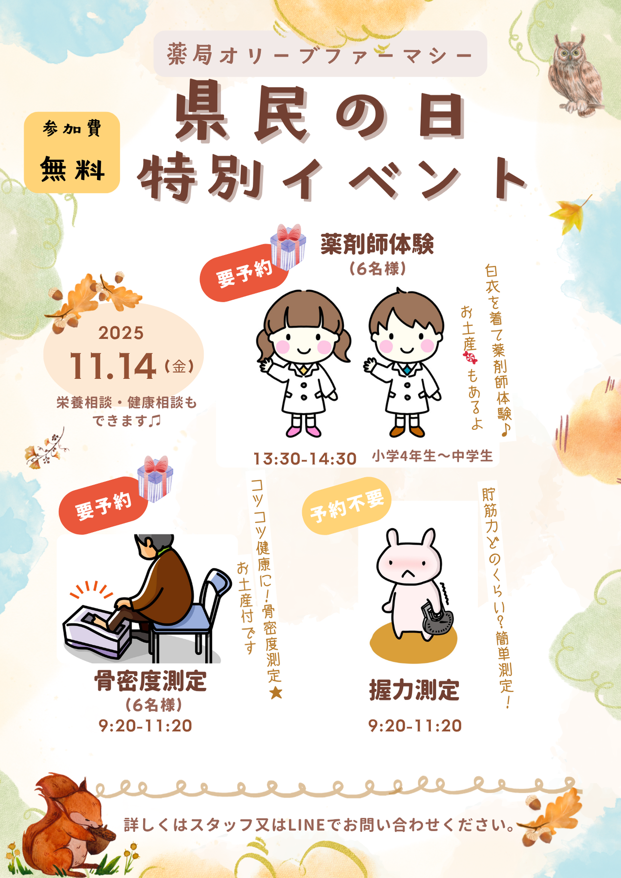 ③こども薬剤師体験:要予約、小学4年生から中学生、6名様まで