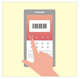 スキャン支払い画面の右下に表示されているフラッシュマークの上にある[写真(アルバム)]マークをタップ